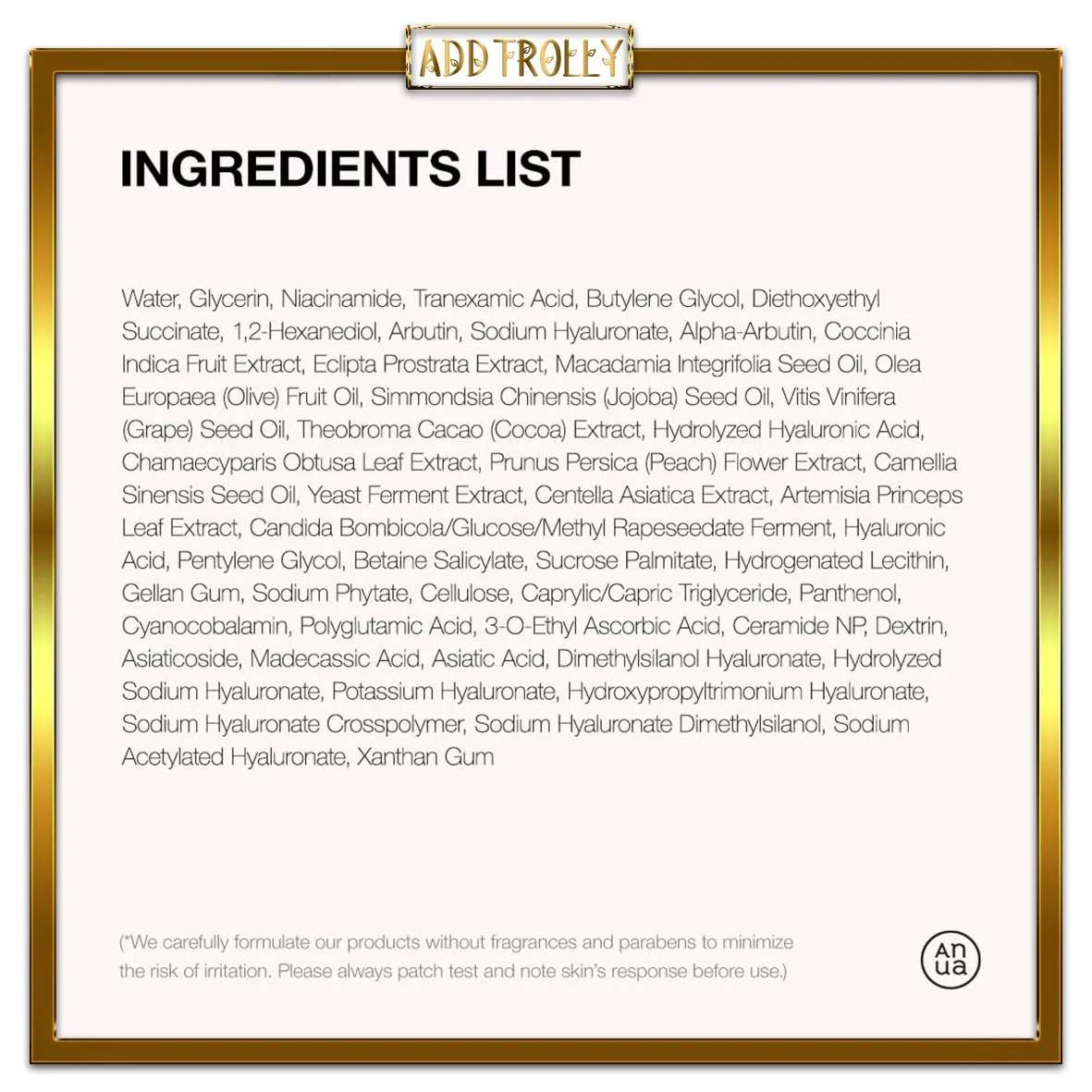- ترکیبات کلیدی: ۱۰% نیاسینامید، ۴% ترانگزامیک اسید، ۲% آربوتین، سرامید و هیالورونیک اسید