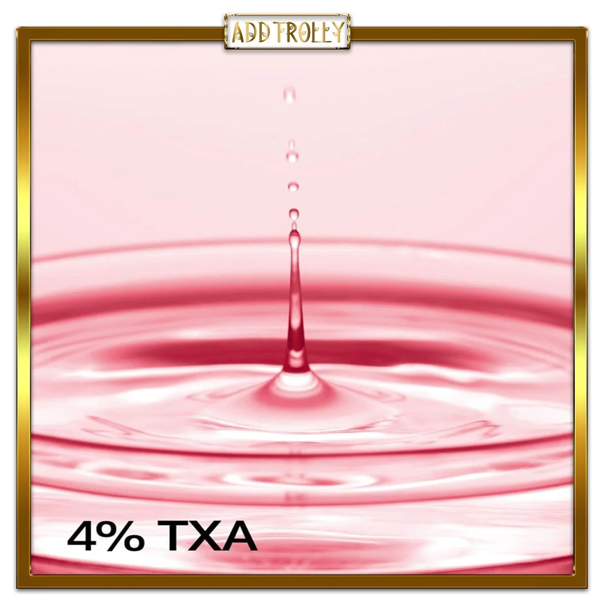 ۲. ترانگزامیک اسید ۴% (Tranexamic Acid): این ترکیب قدرتمند، به ویژه در درمان لک های سرسخت و ملاسما شهرت دارد. ترانگزامیک اسید با مهار فعالیت آنزیم تیروزیناز و کاهش تولید پروستاگلاندین ها (عوامل التهابی)، به طور مستقیم تولید ملانین را هدف قرار داده و به روشن تر شدن و یکنواخت شدن رنگ پوست کمک شایانی می کند.