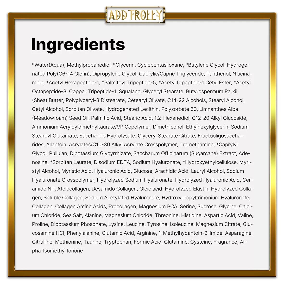 Peptide Complex — ترکیبی از پپتایدها مثل Acetyl Hexapeptide‑1 و Palmitoyl Tripeptide‑5 (و برخی پپتایدهای اضافی) که تولید کلاژن و الاستین در پوست را تحریک میکنند و به لیفت، سفتی و کاهش چین و چروک کمک میکنند.