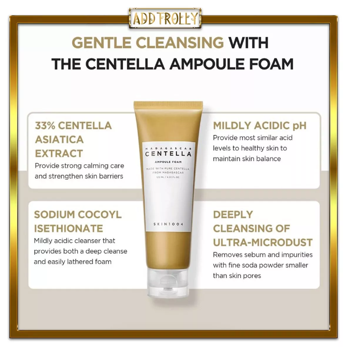 فوم شوینده با آمپول سنتلا برای پاکسازی عمیق و حفظ رطوبت پوست.