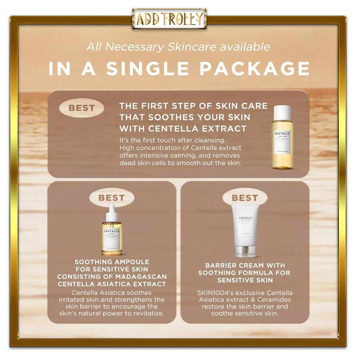 تمام محصولات این مجموعه بر پایه عصاره خالص سنتلا آسیاتیکا از ماداگاسکار ساخته شدهاند؛ مادهای گیاهی با خواص فوقالعاده آرامبخش، ضدالتهاب و تقویتکننده سد دفاعی پوست. این ترکیبات ملایم و مؤثر، کیت را به گزینهای عالی برای انواع پوست، بهخصوص پوستهای حساس، تحریکپذیر و مستعد قرمزی تبدیل میکنند.